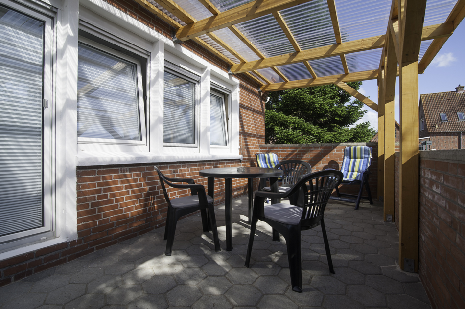 Terrasse: 18 qm mit Liegemöglichkeit und Sitzgelegenheiten