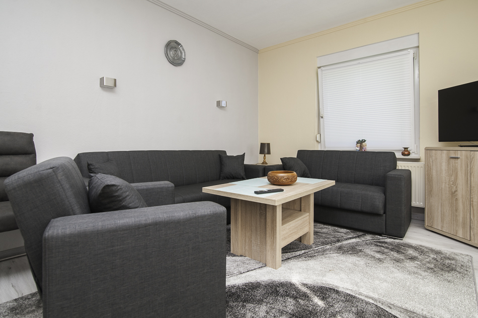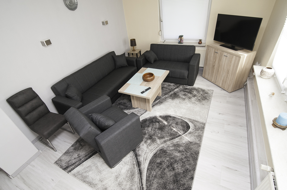Ihnen steht in ein Wohnzimmer mit SAT-TV, eine komplett eingerichtete Küche mit E-Herd und Backofen sowie Mikrowelle, etc., sowie ein Schlafzimmer mit Doppelbett, und ein Bad mit begehbarer Dusche/WC zur Verfügung.