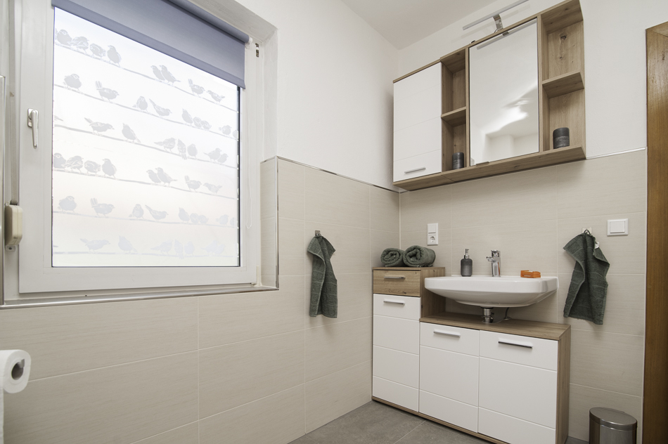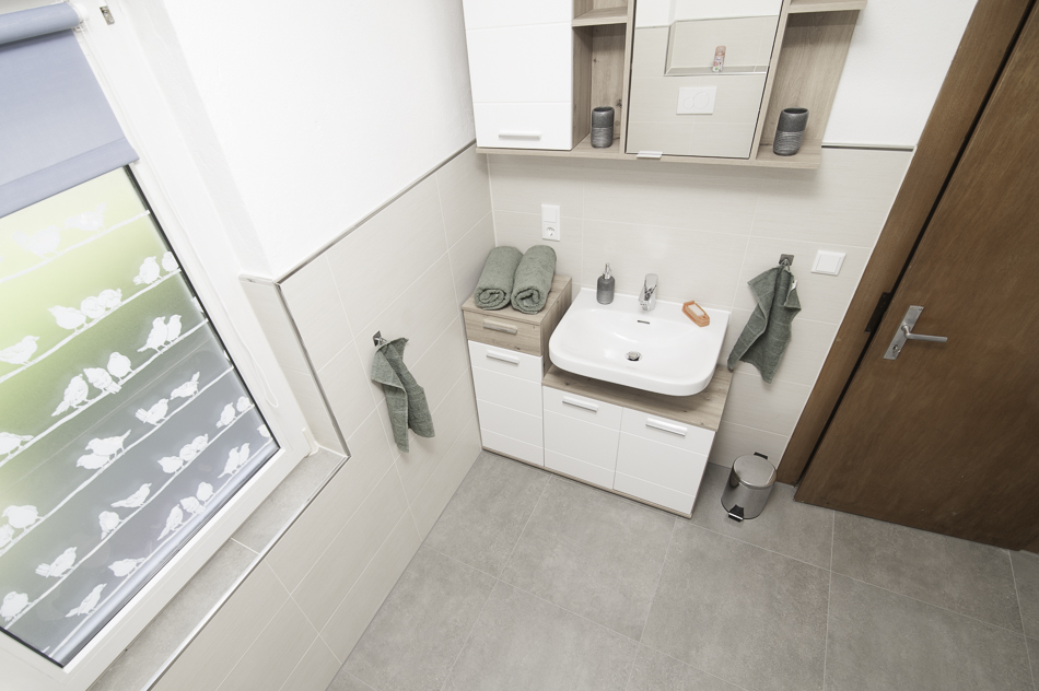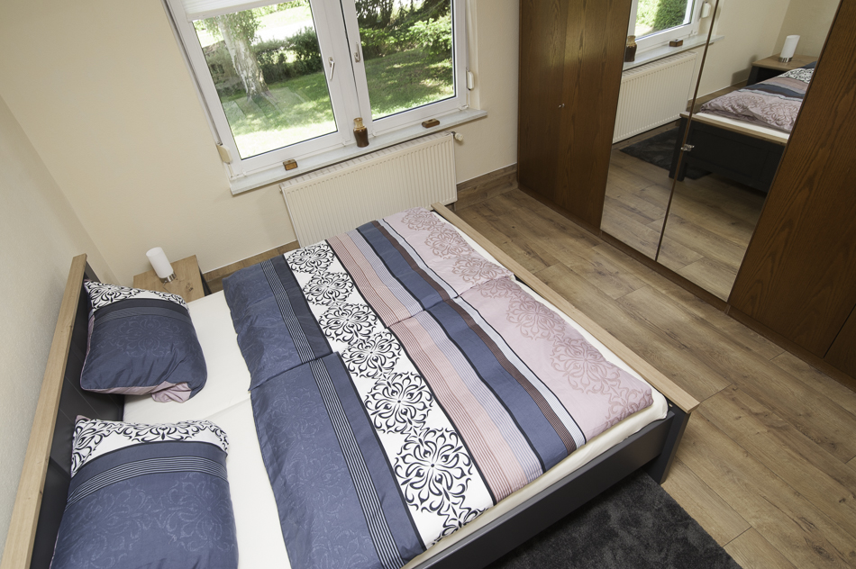 Bett- und Tischwäsche sind Service des Hauses. Entspannung und Ruhe finden Sie auch auf der 18 qm großen Terrasse mit Blick auf eine Streuobstwiese mit altem und neuen Baumbestand.