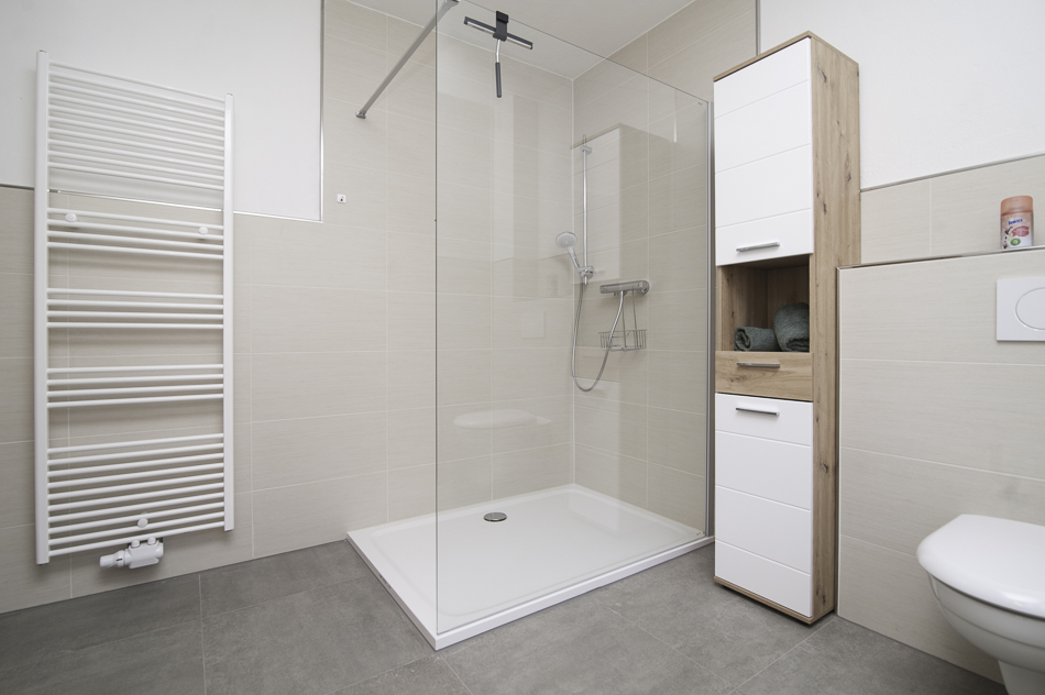 Bad: 8 qm, mit begehbarer Dusche und WC