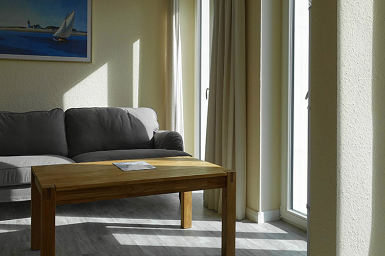 Die Wohnung "Geelina" im Erdgeschoss für 1-4 Personen (70 qm²) verfügt über eine gehobene, harmonisch aufeinander abgestimmte Ausstattung.
