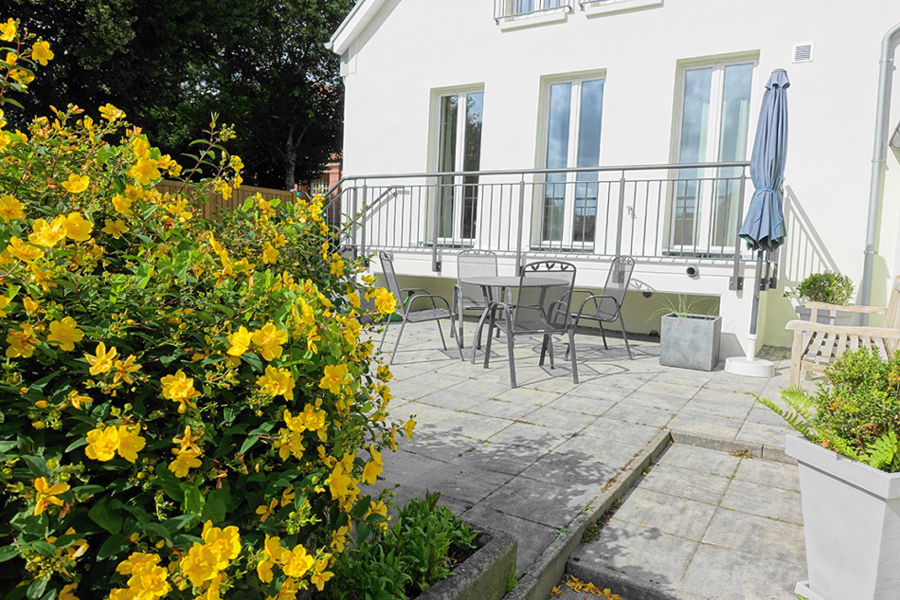 Eine gepflegte Außenanlage mit Terrasse in Südlage und ein PKW-Stellplatz stehen zur Verfügung. Besonderheit: Aufwendig restauriertes historisches Wohnhaus mit den Annehmlichkeiten einer modernen harmonischen Komfortwohnung.