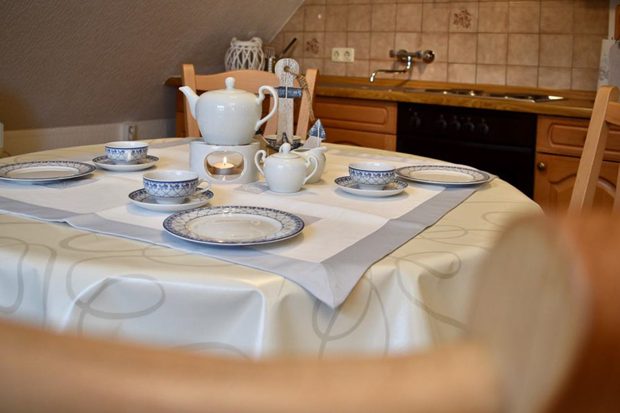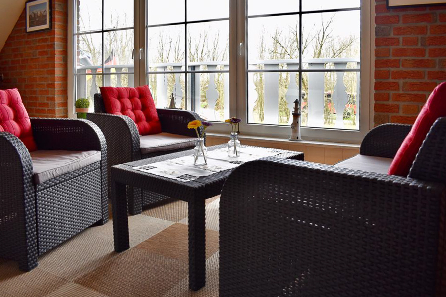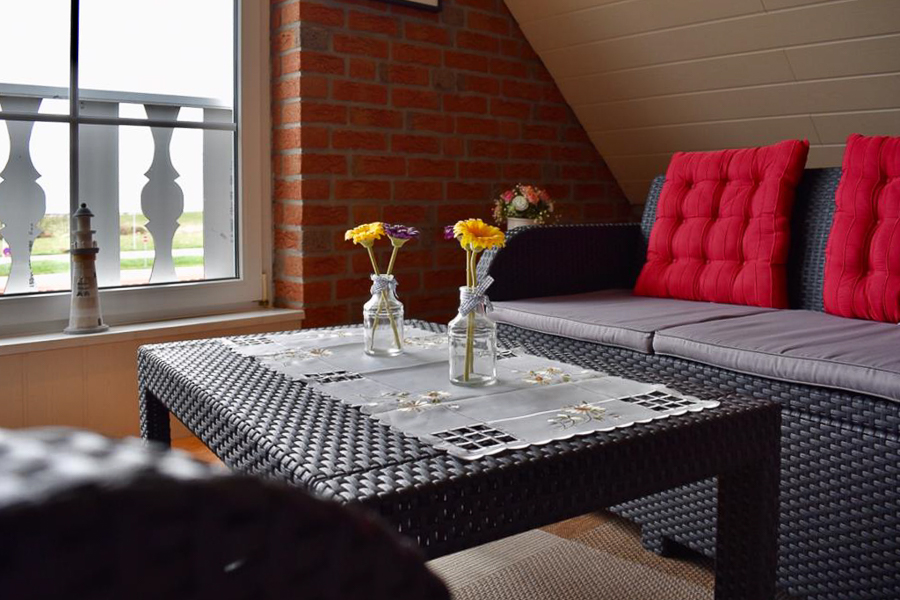 Die geräumige Ferienwohnung (64 qm, Bj. 1988) im Obergeschoss ist für 2 - 4 Personen ausgestattet. Das Haus befindet sich in der Nähe des Deiches, der Hafen ist in weniger als 10 Minuten zu Fuß zu erreichen.