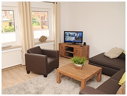 - einem Wohnzimmer mit gemütlicher Wohnlandschaft (Ausstattung: SAT-TV, DVD-Player, IPhone Docking-Station, Stereoanlage, Radio, CD-Player) mit separater Essecke und Zugang zur Südterrasse
