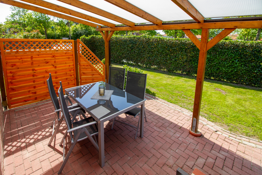 Zusätzlich haben Sie in der Wohnung ein geräumiges Tageslichtbad mit Dusche. Im Außenbereich können Sie auf der überdachten Terrasse Ihre Seele baumeln lassen.