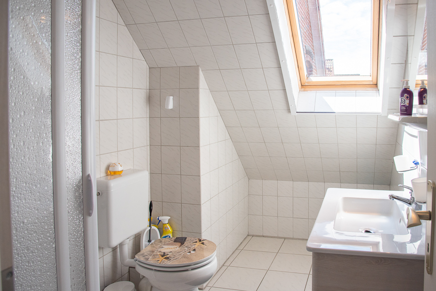 Zwischen den beiden Schlafzimmern befindet sich das Duschbad.