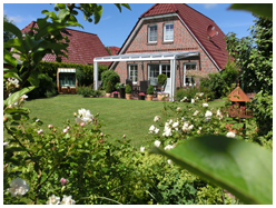 Eine Sonnenterrasse lädt zum Sonnenbaden ein. Die großzügig gestaltete Gartenanlage mit über 900 eingezäunten Quadratmetern lässt kleinen Besuchern viel Raum zum Spielen.