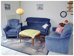Ferienhaus (70 qm) für 1 - 4 Pers. in ruhiger Lage nicht weit vom Deich. Wohnraum mit Farb-TV (Sat-Ant.), DVD-Player, Stereoanlage, Telefon. Einbauküche komplett ausgestattet mit Geschirrspüler, Mikrowelle und mehr, 2 Schlafräume, Bad m. Dusche und WC, sowie 2-tes WC im EG. Garten und Pkw-Stellplatz.