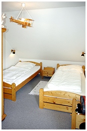 Es verfügt über zwei Schlafzimmer - eines mit Doppelbett und ein Schlafzimmer mit 2 Einzelbetten. Ein Kinderbett ist zustellbar.