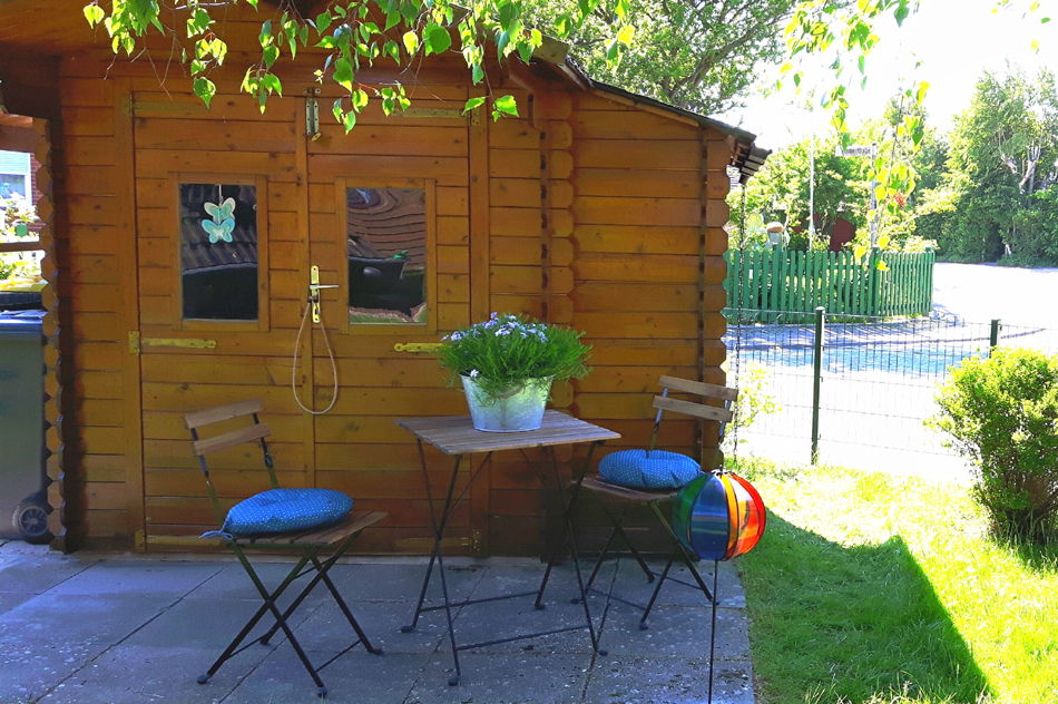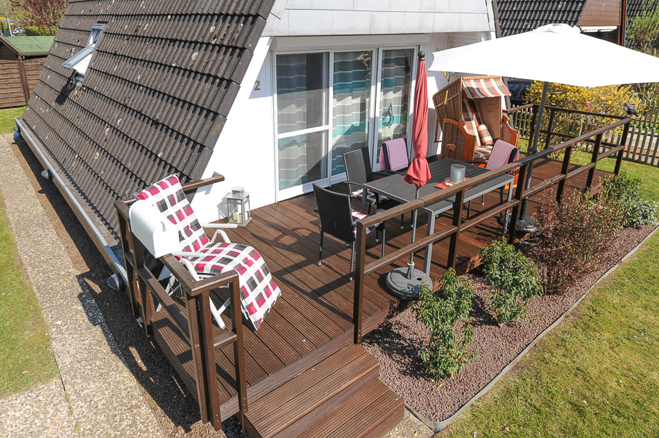 Im Außenbereich steht den Gästen eine große Süd-Terrasse mit neuen Gartenmöbeln, ein Strandkorb sowie Gartenschirme zum Entspannen und relaxen zur Verfügung.