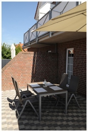Die sichtgeschützte Terrasse in Südlage verfügt über moderne Gartenmöbel und einen Sonnenschirm. Hier können Sie viele entspannende Stunden verbringen.