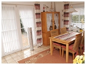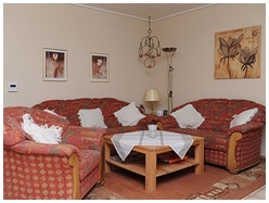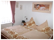 Ferienwohnung für 4 Pers., ca. 60 qm, Wohnzimmer (25 qm) mit offenem Kamin, Terrasse mit Außengrill, gut ausgestattete, geflieste Küche (Spülmaschine, Mikrowelle etc.), 2 Schlafräume mit Laminatfußböden. Kabel-TV, Internet (DSL / WLAN), Telefon. Hauseigener Parkplatz, Garten, Terrasse sowie 2 Fahrräder sind vorhanden.